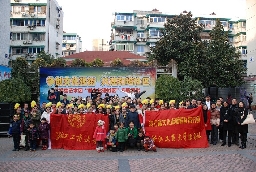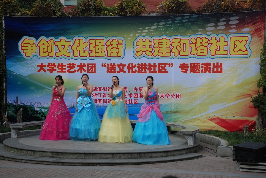 12月9日,在全国上下欢庆党的十八大胜利召开之际,浙江省大学生艺术团浙江工商大学分团赴上城区湖滨街道“送文化进社区”专题演出在湖滨街道东平巷社区隆重举行,湖滨街道干部群众与我校团委相关人员共同观看了演出。