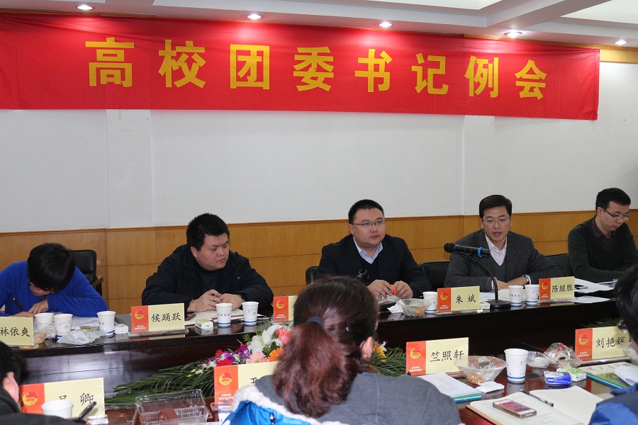 团省委副书记朱斌出席会议并讲话,团省委常委、学校部部长陈继胜就2013年高校共青团工作思路进行了介绍,省学联副秘书长蒋成、各省属高校团委书记与会。
