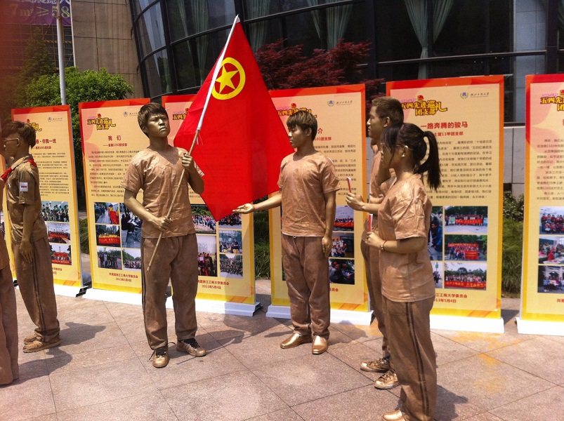在五四青年节期间,校团委还精心策划并组织了“致青春---五四献礼”系列活动,在校园内开展了五四红旗(先进)团支部巡礼图片展,组织相关社团进行“青春梦想在时代进步中焕发绚丽光彩”铜人展,营造出浓厚的节日氛围。