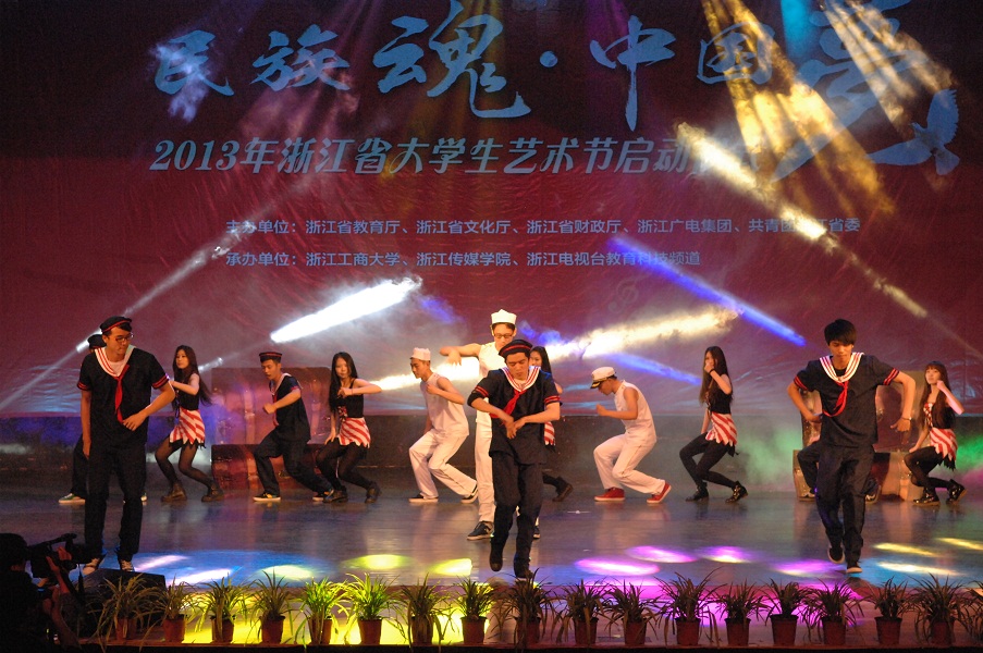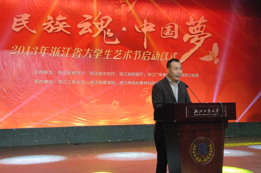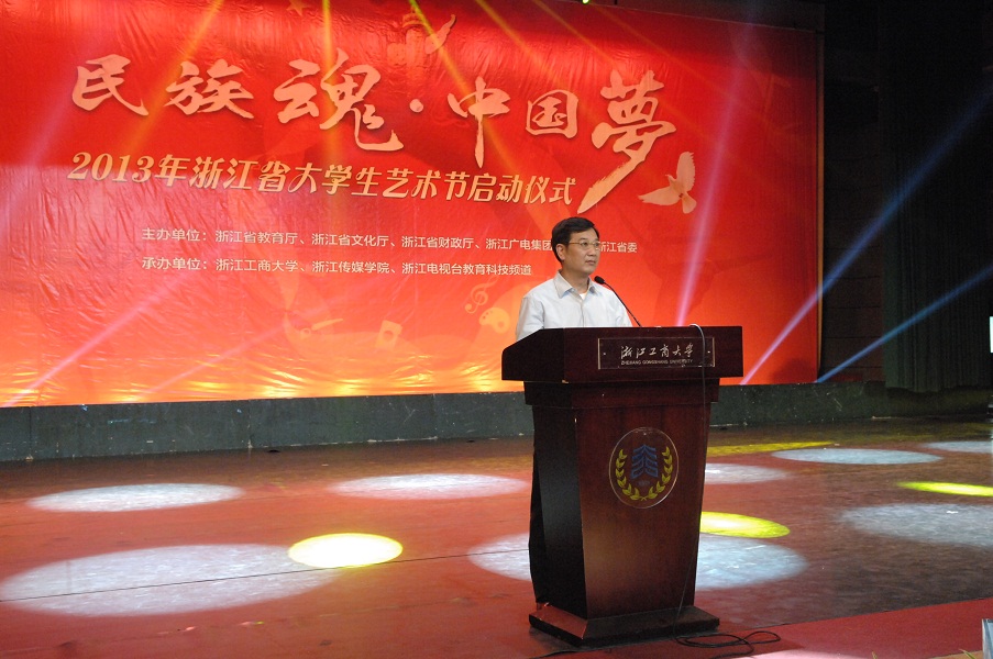 5月7日下午,以“民族魂•中国梦”为主题的2013年浙江省大学生艺术节启动仪式在我校学生活动中心剧院隆重举行。浙江省教育厅副厅长鲍学军,省文化厅副厅长陈瑶,团省委副书记朱斌,我校党委书记蒋承勇、副校长李金昌,省教育厅体卫艺处处长李建章,省教育厅下沙高校园区办主任胡惠华,省文化厅调研员张卫东,团省委学校部部长陈继胜和部分省内高校领导与大学生代表参加了此次活动。
