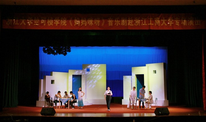 5月26日,我校学生活动中心剧院内热闹非凡。浙江大学竺可桢学院音乐剧社应邀来我校进行高雅艺术进校园专场演出之音乐剧《妈妈咪呀》。副校长李金昌、浙江大学竺可桢学院相关负责人亲临了演出现场,浙江大学的师生们和我校近800余名师生一同观看了演出。