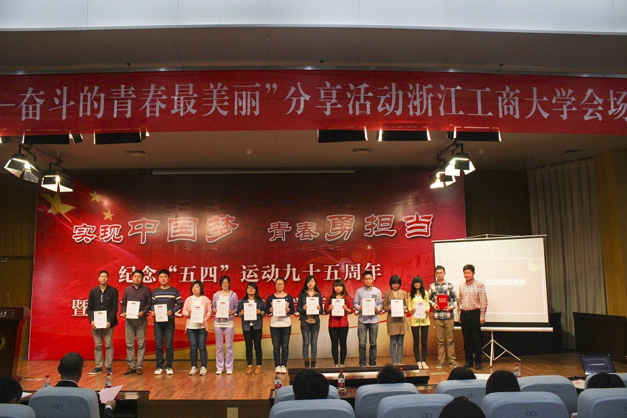 大会表彰了2013年度国家奖学金、省级社会实践与青年志愿者荣誉、全国和浙江省挑战杯荣誉、学生文艺省级荣誉、学生社团省级荣誉、组织建设在内的6大类奖项。大会最后还举行“我的中国梦——奋斗的青春最美丽”分享会,邀请第18届“中国青年五四奖章”提名奖获得者陈伦和浙江省杰出志愿者温州市绿色水网环保公益中心创始人白洪鲍作了精彩的报告,分享了他们的“村支书梦”和“环保梦”,激励大学生成为肩负重担,心系天下的新一代青年。