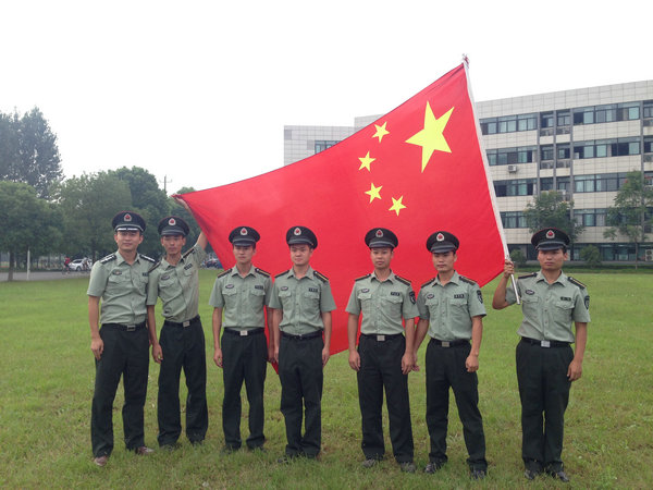 商大部分军训教官与国旗合影