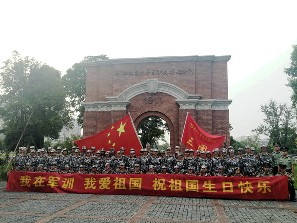 商大军训三团代表学生祝祖国生日快乐