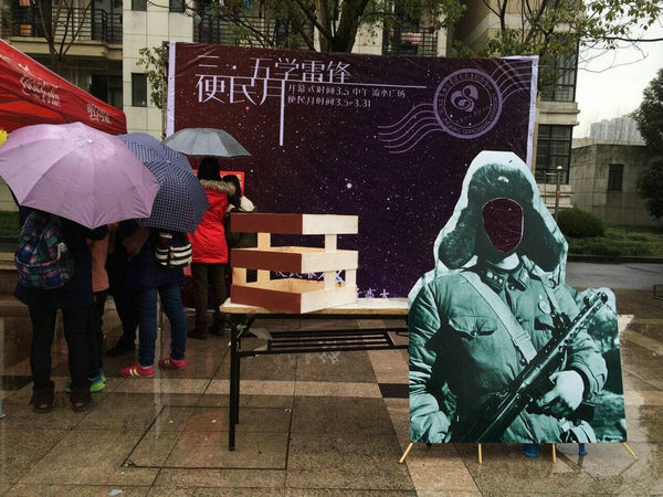 “你好,我过两天快递比较多,请问你们能帮忙代领吗?”一个个子小小的女生用小小的声音问到。“可以的,同学,请在这里写下你需要帮助的时间。”一个脸颊红红的红马甲笑着回答了她。类似这样对话随处可见,不远处又可以看见红马甲正在为一名腼腆的同学拍证件照。在场同学和老师们体验到了自己所喜欢的服务项目,在体验服务的同学,不免发出惊叹“原来志愿服务可以这样做,那么我也愿意成为一名志愿者”。青年志愿者的负责人江悦华表示,志愿的定义可大可小,大到两项计划的志愿者,为了实现“到西部,到偏远地区,到祖国和人民最需要的地方去”,毅然将自己的青春奉献给山区的孩童;小到身边的一份鼓励、一份帮助,为没有时间的同学顺路带一份快递,为生活技能欠佳的同学缝补一颗纽扣,或许微不足道的小事却能为其他人带来温暖。“三•五”不仅是个符号,更是一种提醒,若愿意奉献自己的一份时间与一份精力,那社会将有千千万万的雷锋,千千万万的雷锋纪念日。