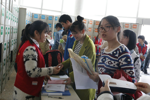3月28日,志愿者服务考生报到工作与校长见面会。20余名志愿者全天8小时坚守学校飞翔门和凯旋门接待点考试咨询与引导处,为考生与家长提供咨询服务和引导服务;10余名志愿者耐心引导考生家长有序进入校长见面会会场。