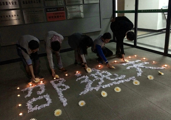 4月5日,食品学院举办了纪念邵逸夫先生的小型哀思会。哀思会在学校邵逸夫楼举行,同学们佩戴小黄花,用琐碎的纸片拼出“邵逸夫”字样,并点上灯盏,缅怀先生,感恩邵逸夫先生对我校逸夫楼的捐赠。纪念活动吸引了学院50余名学生参与,同学们在邵逸夫楼平台点燃蜡烛,一同回顾邵逸夫先生的生前事迹,感念先生生前留下的6013个教育慈善事业,感念先生的奉献精神。