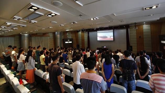 9月3日上午,纪念中国人民抗日战争暨世界反法西斯战争胜利70周年大会在北京天安门广场隆重举行。学校组织师生在下沙校区图书馆一楼报告厅集中收看了大会实况直播。