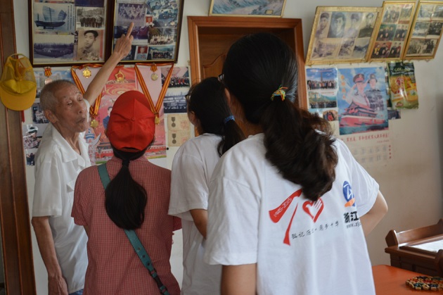 东语学院来到衢州——全国受细菌影响最严重的地区,参观走访首批国家抗战纪念遗址衢州细菌战展览馆、与衢州细菌战协会吴建平会长座谈、参与制作中央电视台衢州细菌战纪录片,为细菌战的调查和研究提供专业日语翻译服务;公管学院“铭记历史,圆梦中华” 台州实践小分队来到温岭、天台,受天台县政府的委托,分别走访抗战老兵、退役军人、60 岁以上老人和低收入残疾人,进行访谈、信息核查以及关于生活保障的调研,并与多位抗战老兵和革命老人开展座谈访问,以独特的方式传承和弘扬抗战精神,纪念抗战胜利70周年。本次活动受到共青团浙江省委常委、天台县委常委、副县长杜作锋的全程关注。