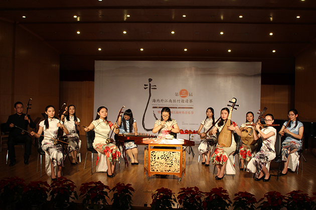 江南丝竹源出于江、浙、沪等地,是拥有浓郁地域气息和深厚历史地位的地方乐种,是我国民族音乐中的一颗璀璨明珠。“海内外江南丝竹邀请赛”创办于2011年,每两年一次,在江、浙、沪轮流主办,是一项具有权威性、专业性和高水准的艺术赛事。本次活动由浙江省音乐家协会和上海音乐家协会、江苏省音乐家协会共同主办。来自海内外的40个丝竹乐队,其中包括中国音乐学院、上海音乐学院、上海民族乐团、江苏民族乐团、浙江民族乐团以及长三角地区几乎所有著名的丝竹乐队、乐社。此外,港、澳、台及东南亚各国华人丝竹团体的600余名选手也参加了此项活动。