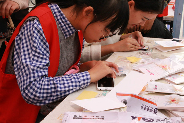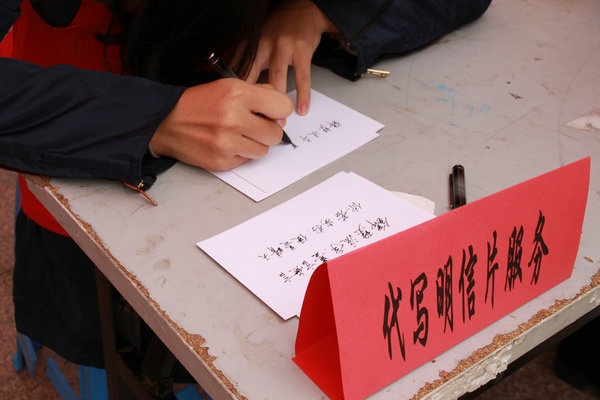 回收草稿纸,换一本经过改良制作的精致草稿本;和志愿者一起把空的饮料瓶涂鸦制作成一个储蓄罐;带着破旧的衣物鞋帽,志愿者现场帮忙针线修补;想给室友写一张好看的生日祝福,书法志愿者用毛笔妥妥搞定……16个服务项目满足着现场过往的每一位师生。除了我校自有志愿服务项目,浙江财经大学志愿者倾力加盟,为我校师生带来了“我把雷锋放心上——DIY雷锋胸针”志愿服务,和现场师生一起动手,做好了数枚雷锋胸针挂在了志愿者的胸前,迎着阳光,仿佛雷锋精神闪闪发亮。