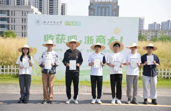 在浙江工商大学2024年“商大有才子”收割体验活动的现场,师生们头戴草帽,手握镰刀,热火朝天地忙活着,他们收割、规整、摆放......干劲十足,收获的氛围像天气的一样火热。