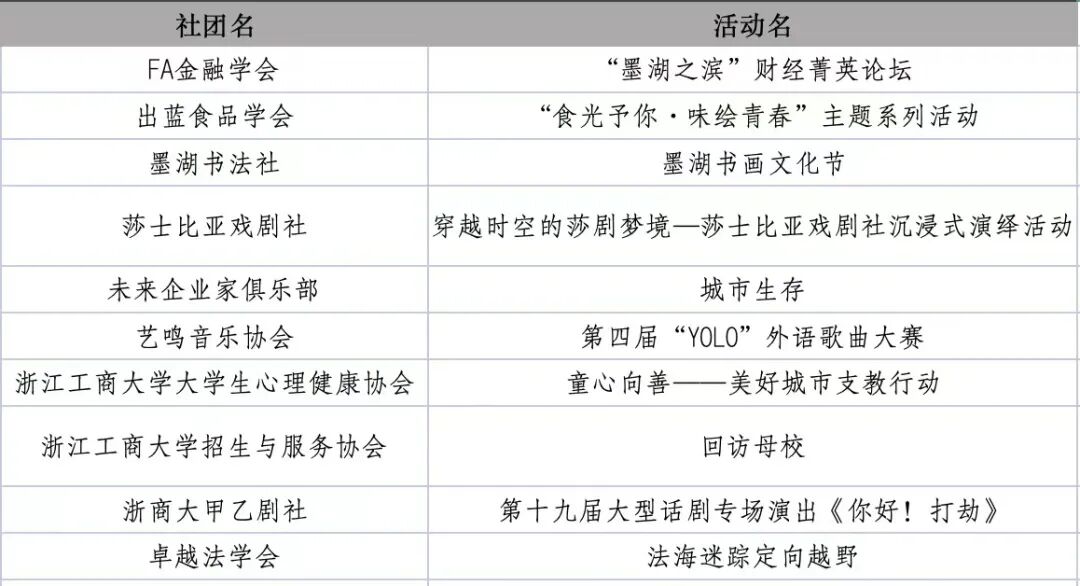 经由校团委老师、校学生社团管理中心主任团、校学生社团管理中心各部门干部、各院社管代表以及大众评审投票评比。十佳社团活动最终结果公示如下: