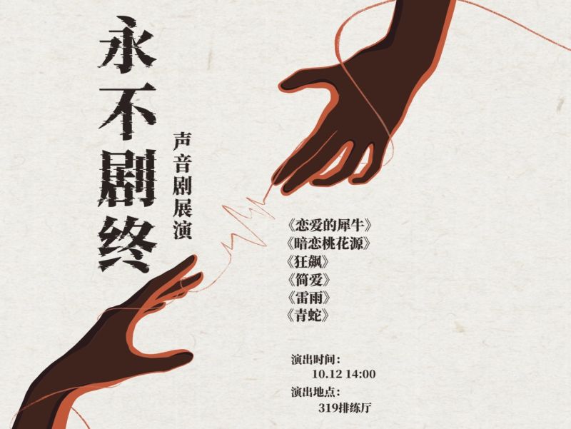 本次展演由实习期的同学倾情呈现。六部经典戏剧将以声音剧的形式重生,每一段对白都藏着最真挚的心跳,每一个音符都裹着最纯粹的热爱。现场更设有匿名纸质投票环节,你的一票,将成为这场展演珍贵的回响。快来为心中的 “最佳声音” 驻足,让这份认可与热爱,与声音共鸣。