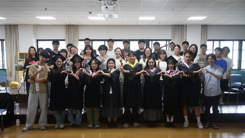当第三篇章《成为耀眼的星座》旋律喷薄而出,如商大去年年底的流星雨,将全场气氛推向高潮。乐团指挥孙老师走上台前,以一句“聚是一团火,散是满天星”寄语往日、今日的管乐团成员们。单簧管的音色中,羽翼渐丰的《鸿雁》飞于落日远空。游子远行、游子归家,而星和交响管乐团是所有成员们的家。