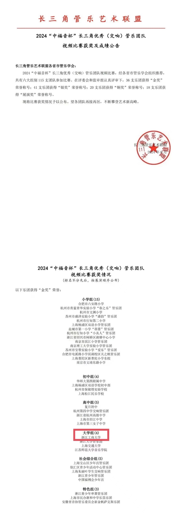 2024年6月2日,长三角管乐艺术联盟举办了长三角优秀(交响)管乐团队(视频)比赛活动。参赛乐团递交视频后,经由评审组织评定奖项。星和交响管乐团以其优秀的表现得到评委认可,荣获比赛金奖,乐团指挥孙佳琪老师获得优秀指挥奖。
