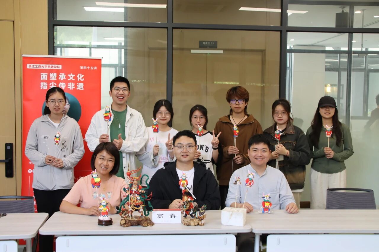 5月15日,浙江工商大学思政论坛第四十五讲在学生活动中心青团汇成功举办。本次讲座的主题是“面塑承文化、指尖传非遗”,由高级非遗技艺传承师高犇老师担任主讲,带领现场的二十余位师生通过亲手制作体验,感受传统艺术之美。