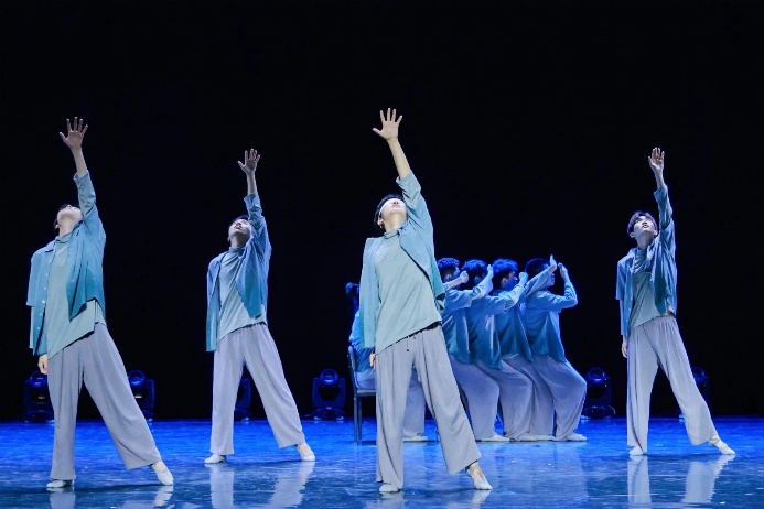 两部参赛剧目风格鲜明、内涵丰富。《粤绣悦美》作为民族民间舞蹈,以粤绣非遗文化为灵感,舞者化身“小绣娘”,将粤绣图案“绘”于鼓面,用轻盈舞姿展现传统手工艺之美,传递对生活的美好期待;现代舞《如影随形》讲述弟弟为失明哥哥捐赠眼角膜,二人携手“看世界”的故事,诠释“万物皆有裂痕,那是光照进来的地方”的信念,舞台上的默契配合源自台下无数次的动作校准与情感共鸣。