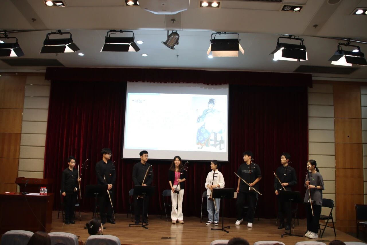 这场讲座讲述了百年二胡的发展历程,并向我们展现了各时期的代表性人物及经典作品。孔老师及其学生的二胡曲目表演,用一种最形象、最生动的艺术诉说,帮助我们重温那些感人至深的音乐画面和动人故事,向我们展现一种最形象、最生动的艺术风采。通过此次讲座,我们既了解到二胡悠久的历史,也感受到二胡特有的民族情怀。这场动人的艺术盛宴同时也激发了我们的爱国精神,指引着我们积极传播中国传统优秀文化。