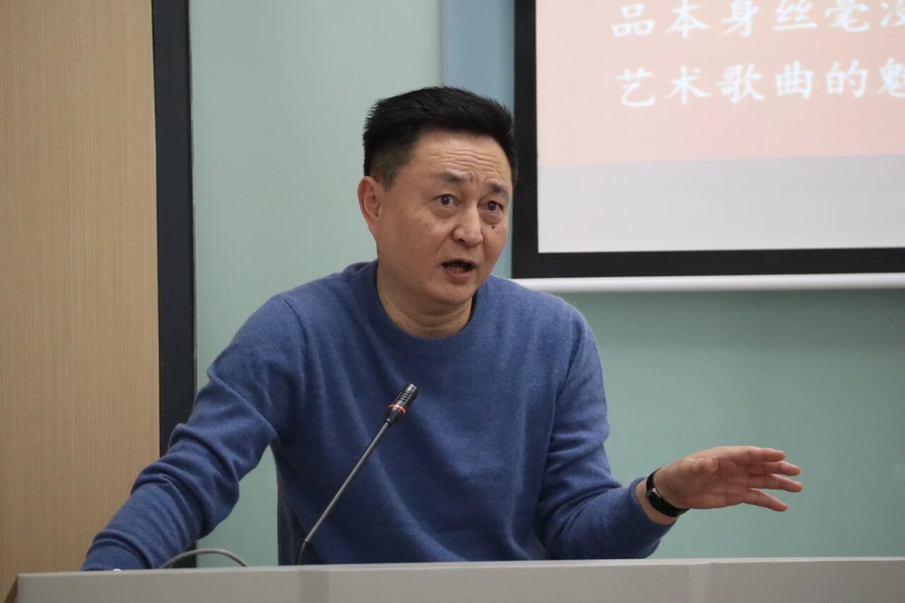 在场报名聆听讲座的大多数人,是对音乐艺术有极大兴趣的同学们,金奇教授“因材施教”先从艺术歌曲的基本概念切入,并自然联系到艺术歌曲的历史发源、落地在不同国家形成不同体裁以及艺术歌曲几百年来的风格演变等内容,最后引出了中国艺术歌曲。他介绍,中国艺术歌曲创作在近百年的发展历史中形成了自身的特点——洋为中用,用西方艺术歌曲形式和创作手法表现中国内容,强调自身的民族特色,力求作品思想性、艺术性、欣赏性的完美统一。