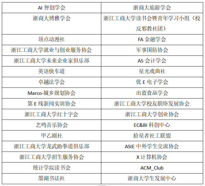 根据《关于开展2025年度浙江工商大学学生社团年审注册及星级评定工作的通知》(浙商大团〔2025〕53号),经各学生社团申报,浙江工商大学学生社团管理中心、校团委审核,评选出32个四、五星级入围学生社团进入现场评选环节,现将评选有关事宜通知如下: