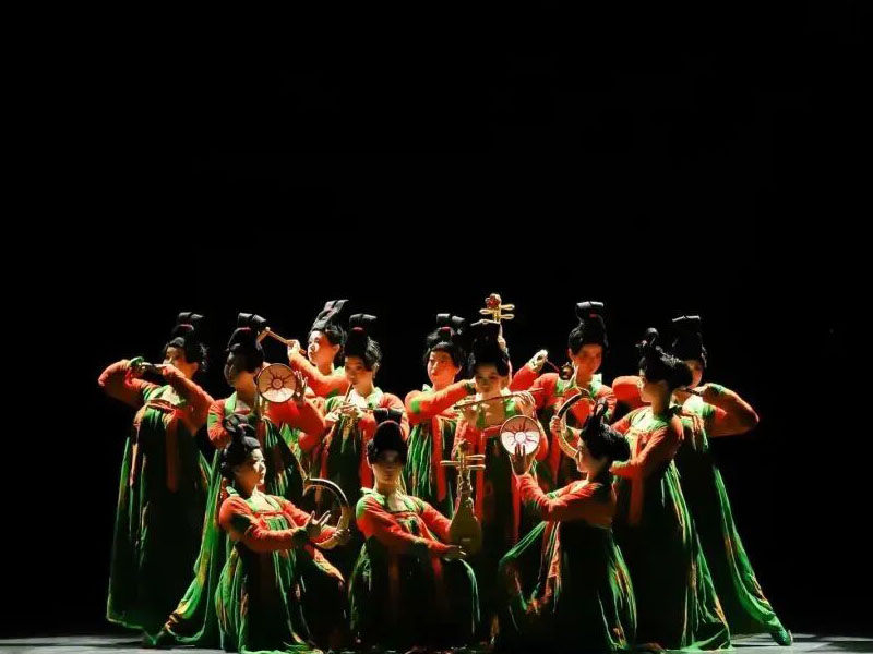 十号晚上的首个节目《唐宫夜宴》则展现了14位婀娜多姿,娇憨可爱少女的丰腴之美。该剧目讲述了正值青春的女乐官在赴宴起舞的路上发生的趣事,其可爱、顽皮的形象与严肃庄重的宫廷氛围形成鲜明对比,别样演绎了“鬓云欲度香腮雪,衣香袂影是盛唐”。演员们有时偷笑,有时嘟嘴,有时惊慌,整个舞台灵动有趣,意味盎然。焦点们以大气自信的台风拉开了整场演出的帷幕,同时也展现了新时代对于优秀传统文化的自信。