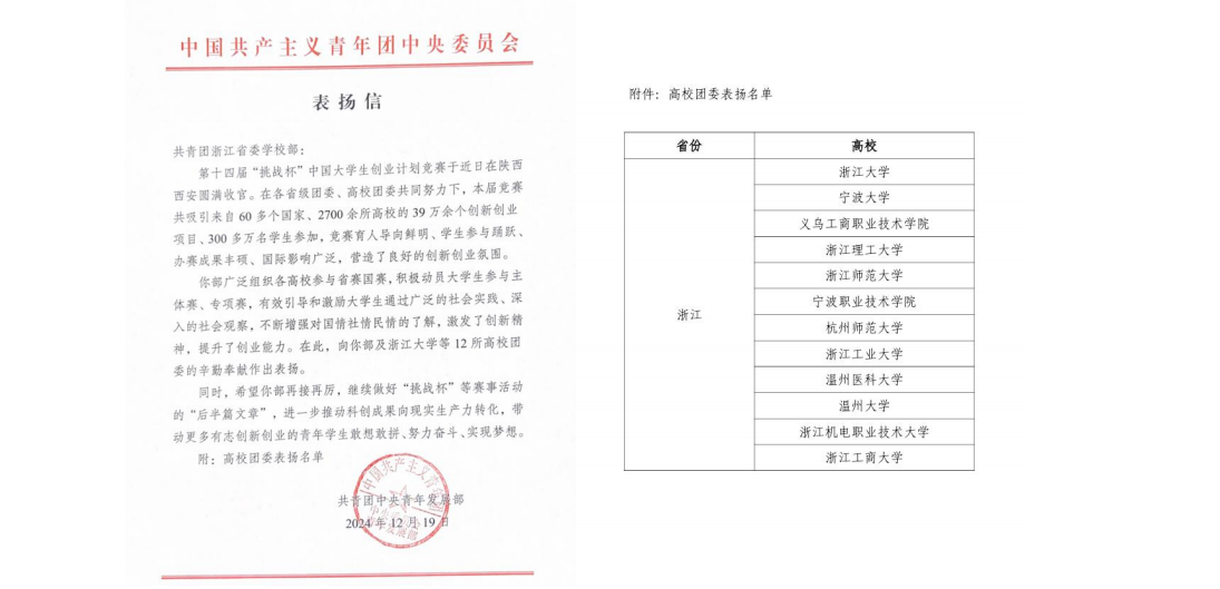 近日,全国两红两优文件正式印发,浙江工商大学团委荣获“全国五四红旗团委”称号,这是共青团中央授予基层团组织的团内最高荣誉。