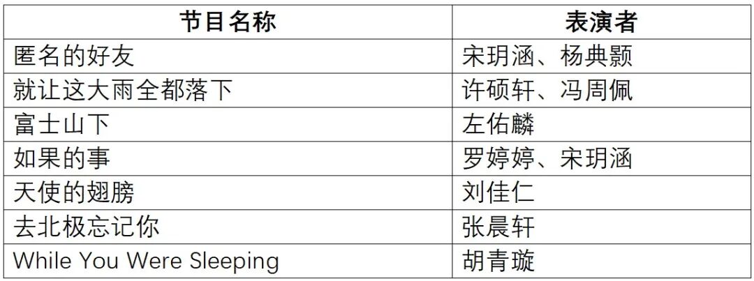 本周,云天合唱团&元怿音乐社将为大家带来七首精心编排的歌曲,用歌声为课间时光添彩。从温柔治愈的抒情旋律到充满青春气息的流行曲风,从细腻动人的叙事演唱到富有感染力的重唱演绎,多样风格将轮番登场。团员们以纯净嗓音传递美好,让大家在短暂的课间里沉浸于音乐的治愈与浪漫,为春日的校园增添几分鲜活与温情。