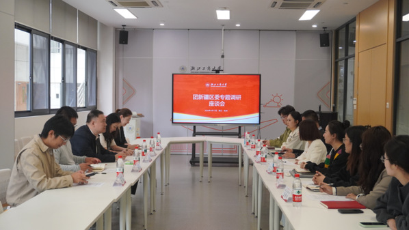 刘恺对浙江工商大学长期以来为新疆输送大批优秀志愿者表示了感谢,并围绕西部计划的政策保障、志愿者生活保障以及激励政策等情况进行了介绍,希望双方深化校地合作,扩大派遣规模、提升人岗匹配度,引导更多商大学子投身西部建设,助力新疆经济社会发展。团浙江省委志工权益部副部长吴晶晶对学校长期以来针对西部计划项目开展的相关工作表示赞赏与感谢。与会人员结合学科和专业特色,围绕如何完善西部计划志愿者的选拔、培训、管理、关怀关爱以及校地合作等议题展开了深入探讨。